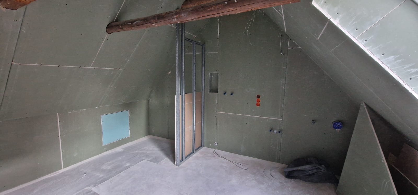 Innenausbau kann Wände, Decken, Böden, Raumtrennungen, Dämmung und Oberflächenbearbeitung umfassen, je nach Projekt und Kundenwunsch.